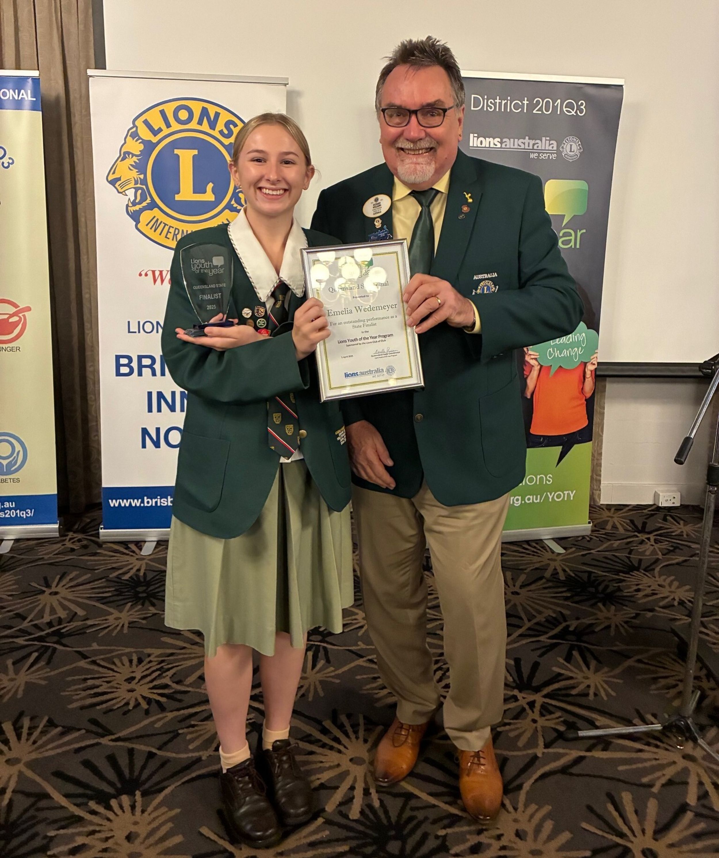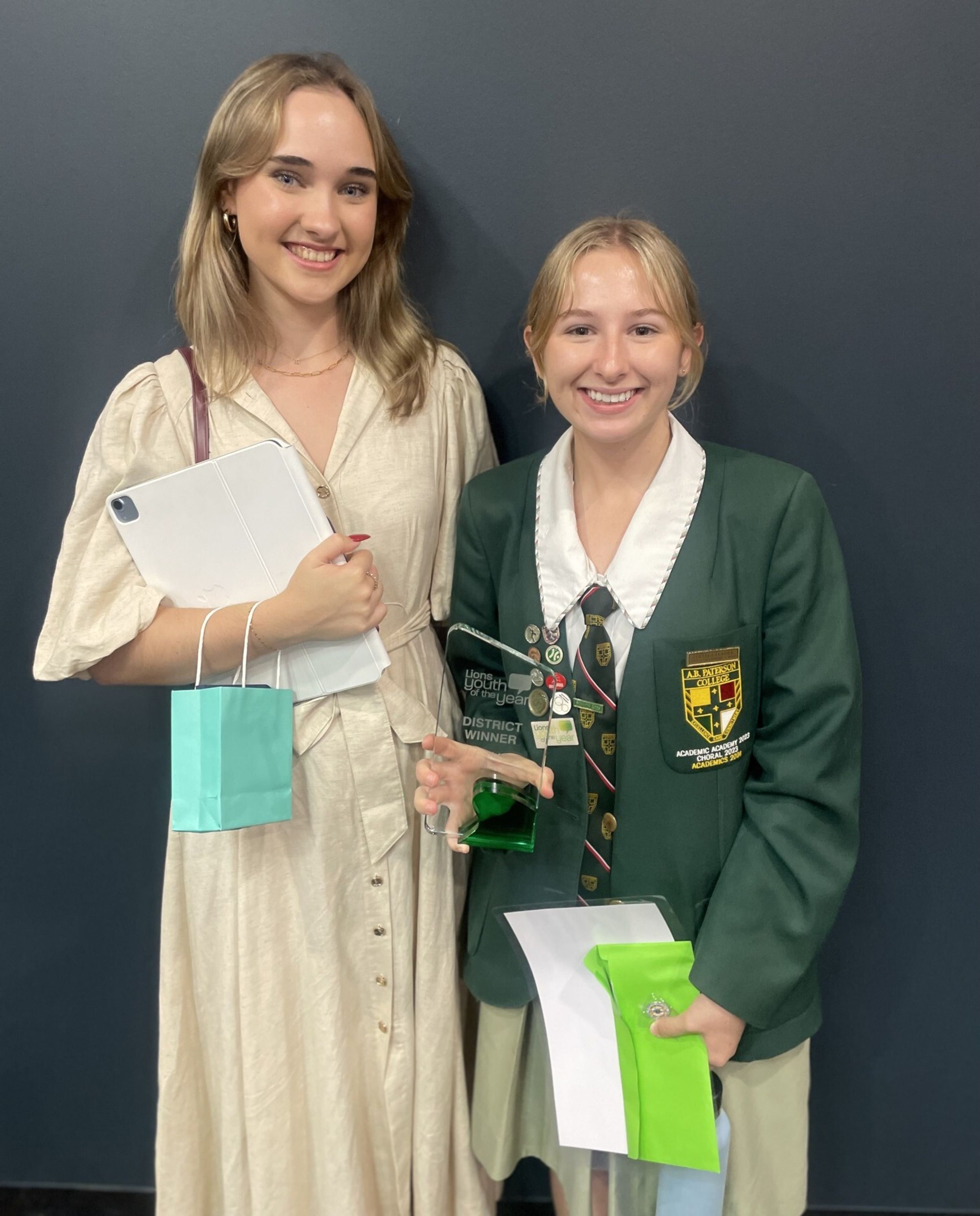 Emelia is pictured above with 2024 College Vice-Captain, Chloe Ward who won the Lions Youth of the Year Region 2 Final last year.
