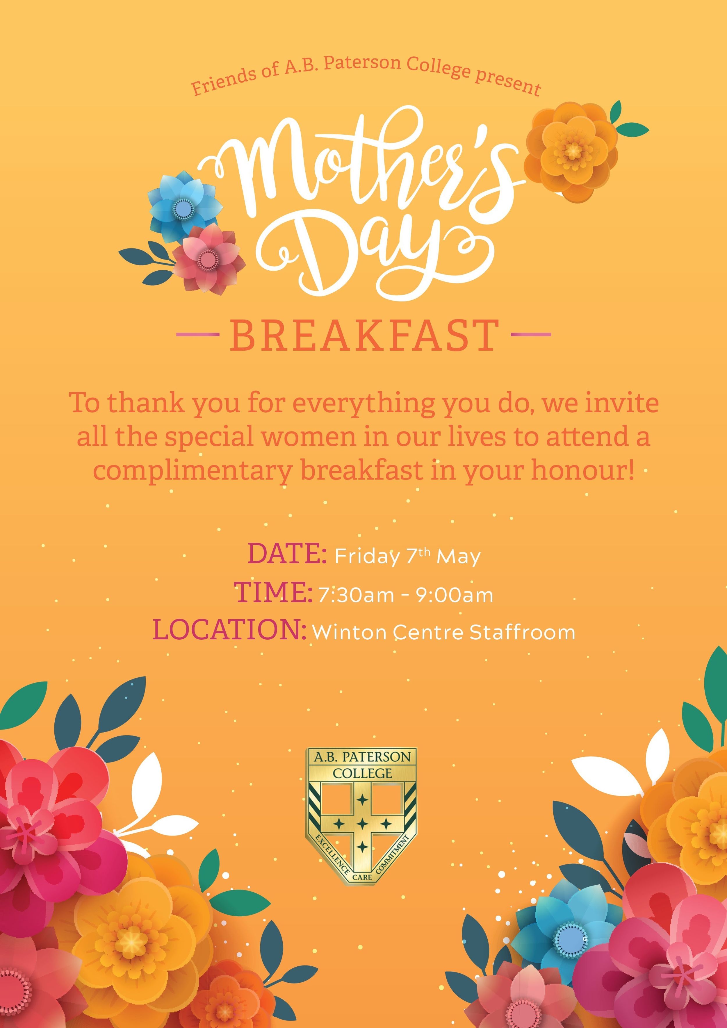 Wishing our A.B. Paterson College community a safe and restful holiday. I look forward to welcoming all our students back to the College on Tuesday 20 April.