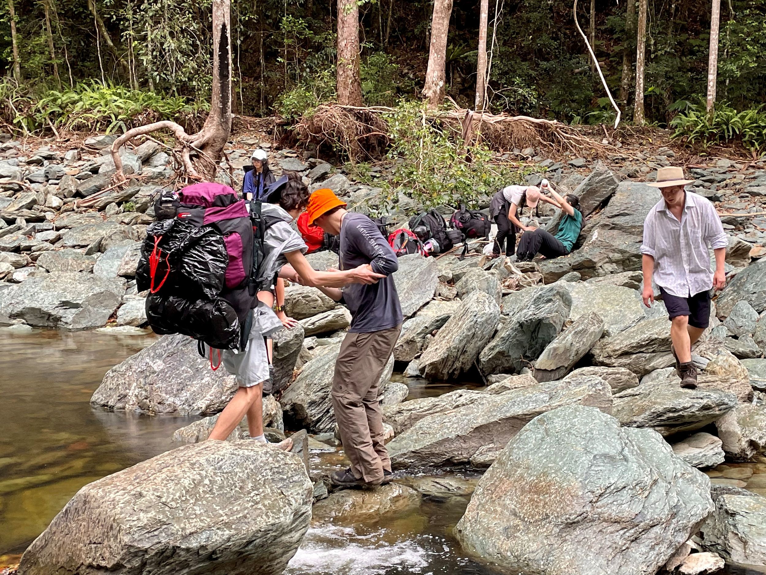 The weather for the 4 days of the camp was very challenging with heavy rain on the first day and continued showers for the remainder of the camp. Arriving at camp late in the night and drenched on the first day was certainly a challenge for all involved. Despite the wet conditions, most of the walking was under the protection of the canopy of the rainforest. Students completed several the walking trails through the Conondale National Park. The terrain included crossing narrow bridges stretching over wide boulder filled riverbeds, to thick dense rainforest to open rocky paths skirting high rocky outcrops. They saw many of the native forest creatures, sometimes too close with leeches being a constant threat to ankles and feet!