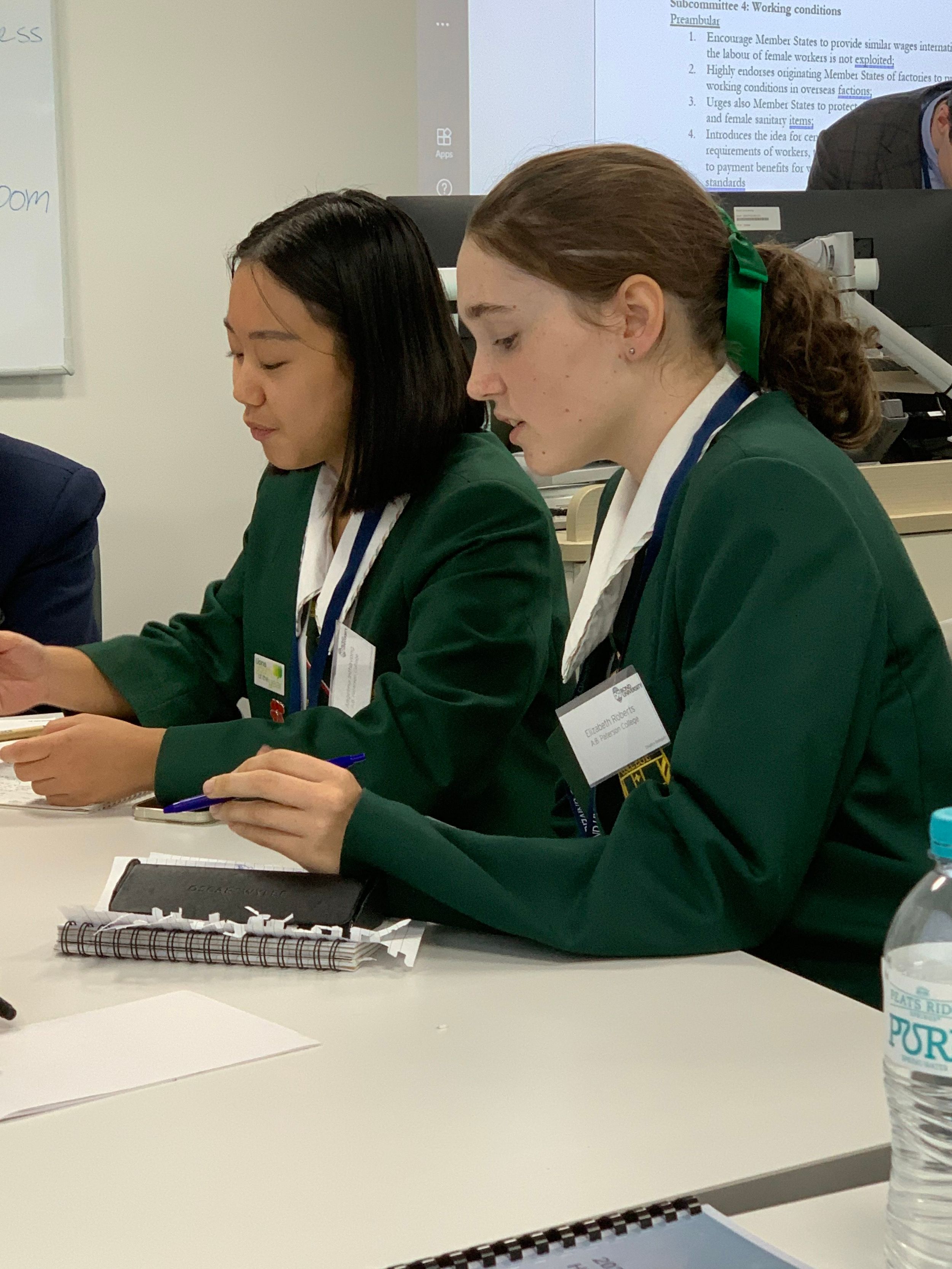 Angelina Inthavong (Australia) and Elizabeth Roberts (India) contributed to Committee 3’s resolutions on ‘The effects of armed or other kinds of conflict on women, including those living under foreign occupation’. This was a lively committee that saw many heated moments of diplomacy and negotiation. Claims were made by Communist nations to reinstate the now defunct Soviet Union - a horrifying thought!
