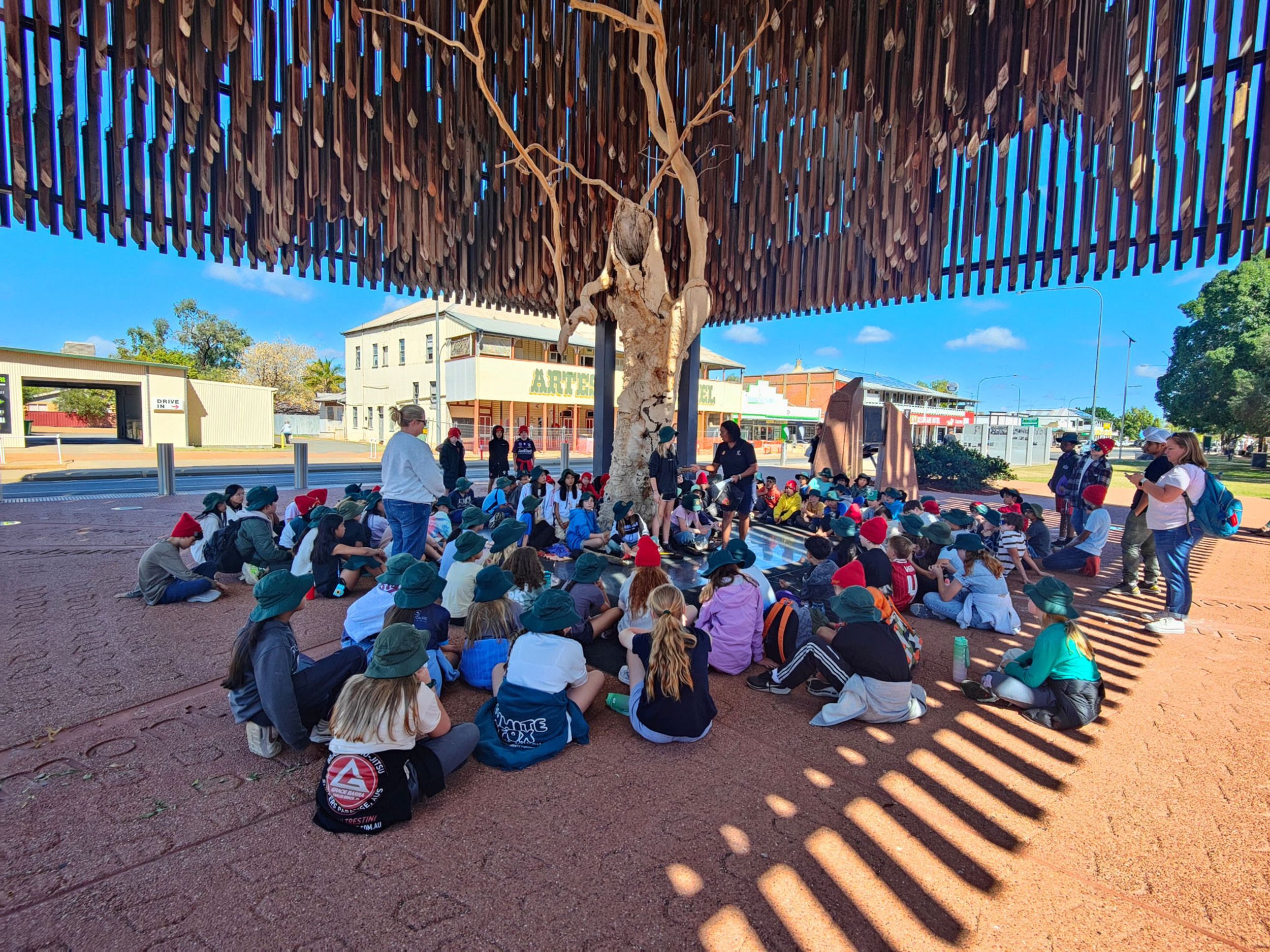 A wonderful part of this camp is connecting with the students from Year 6 at Winton State School. This connection commenced with pen pals prior to camp occurring and then was consolidated on Monday afternoon with the Year 6 students from Winton State School coming to Barty’s Place to take part in activities and connective conversations.