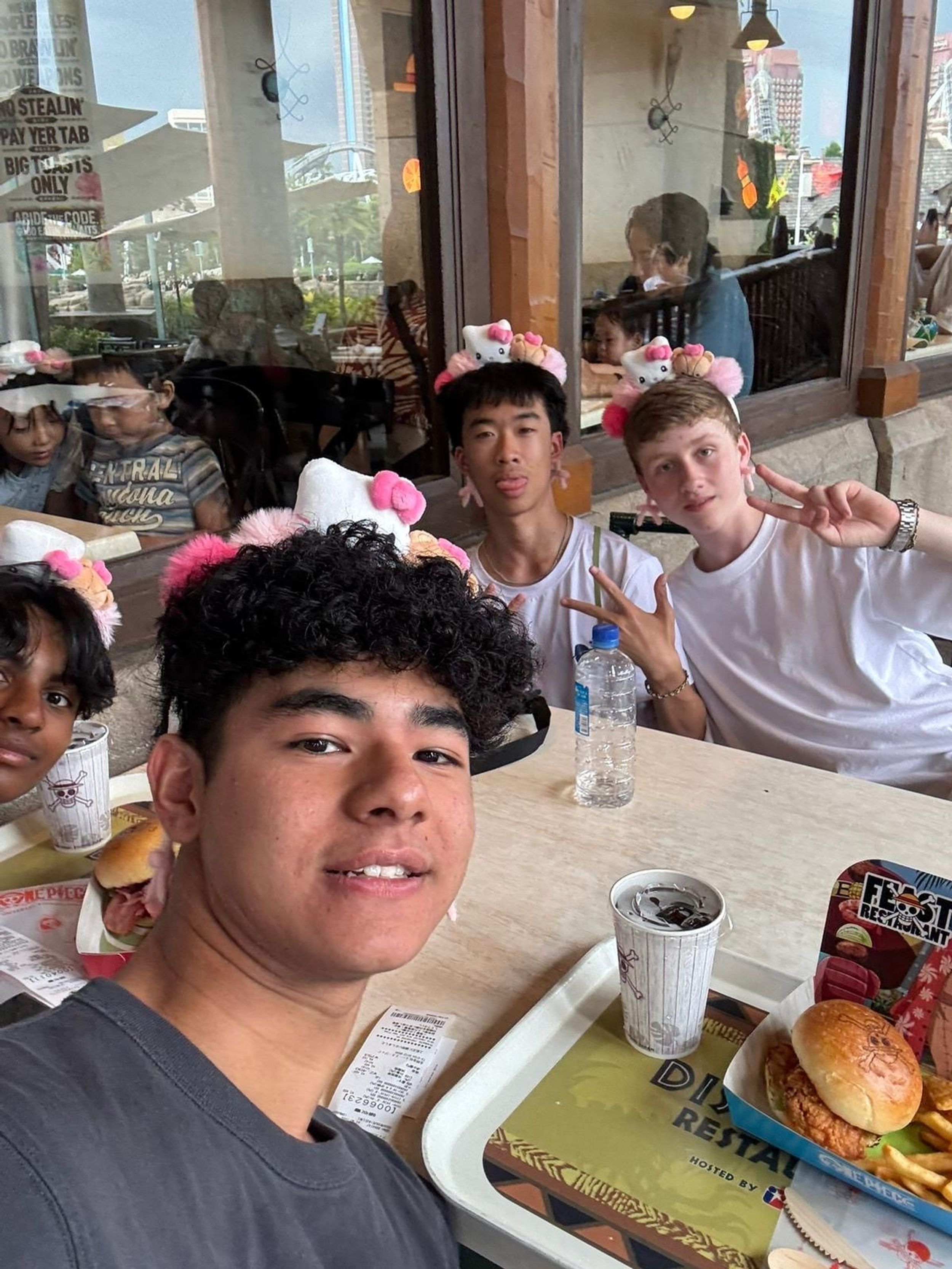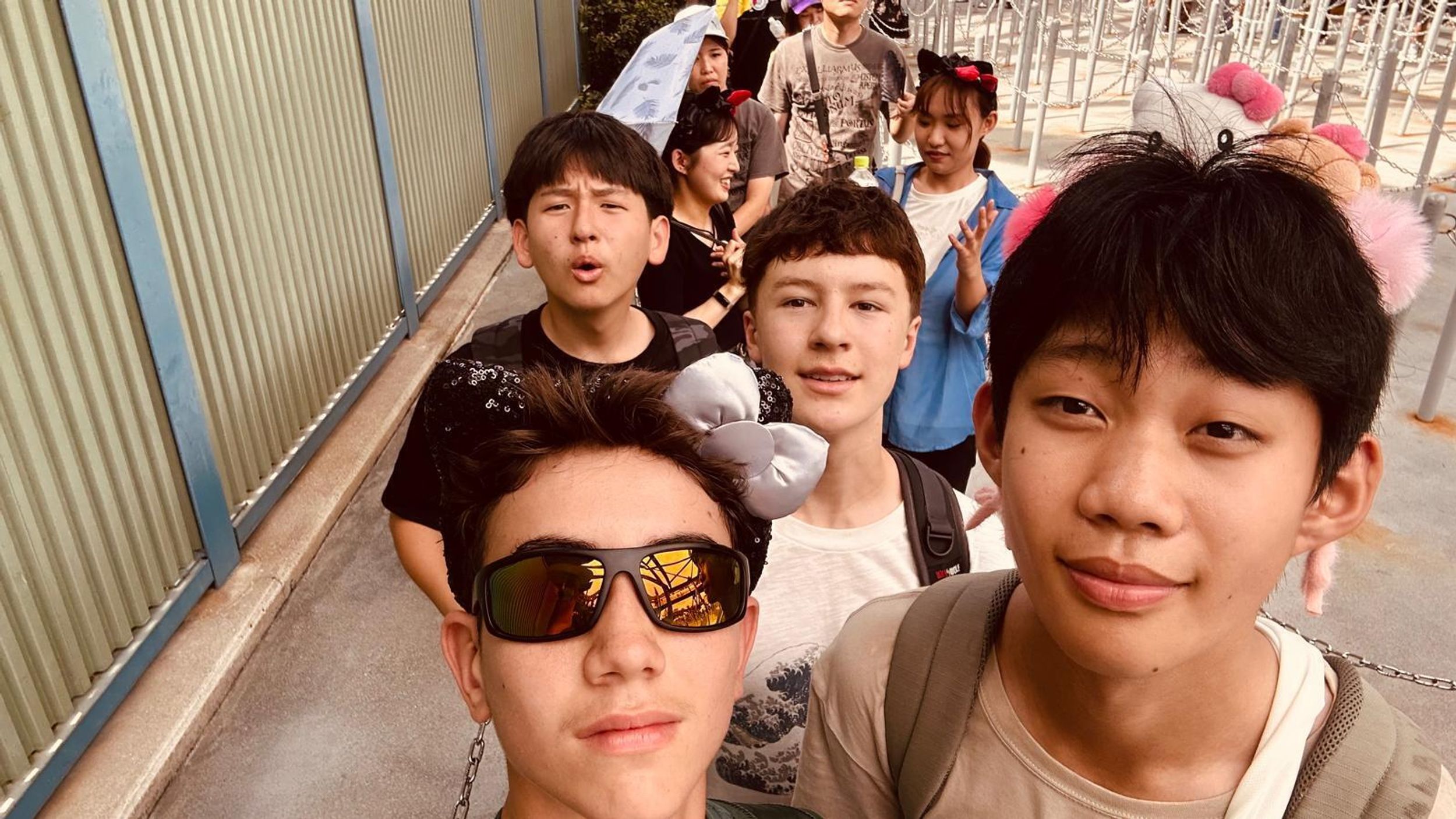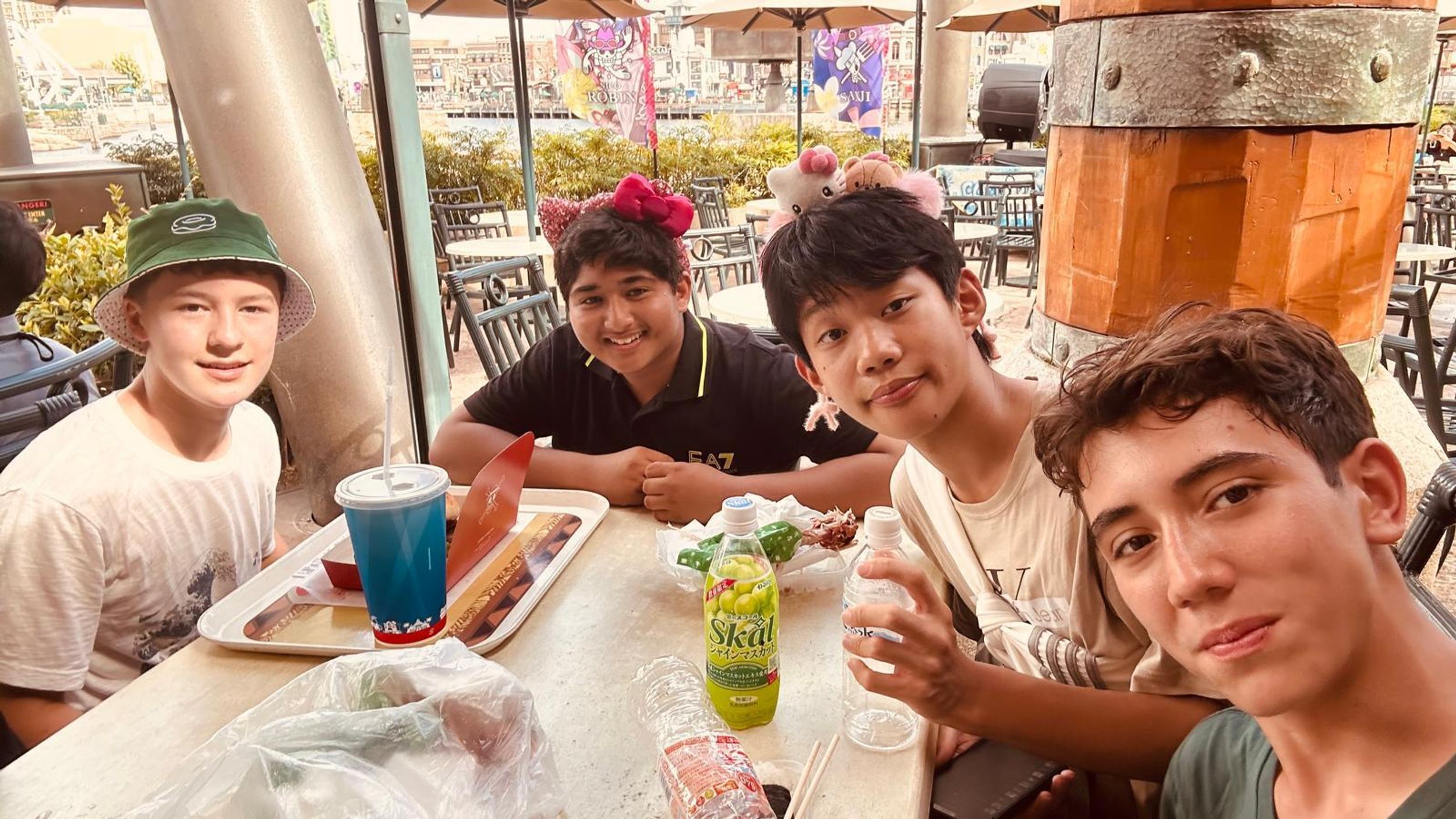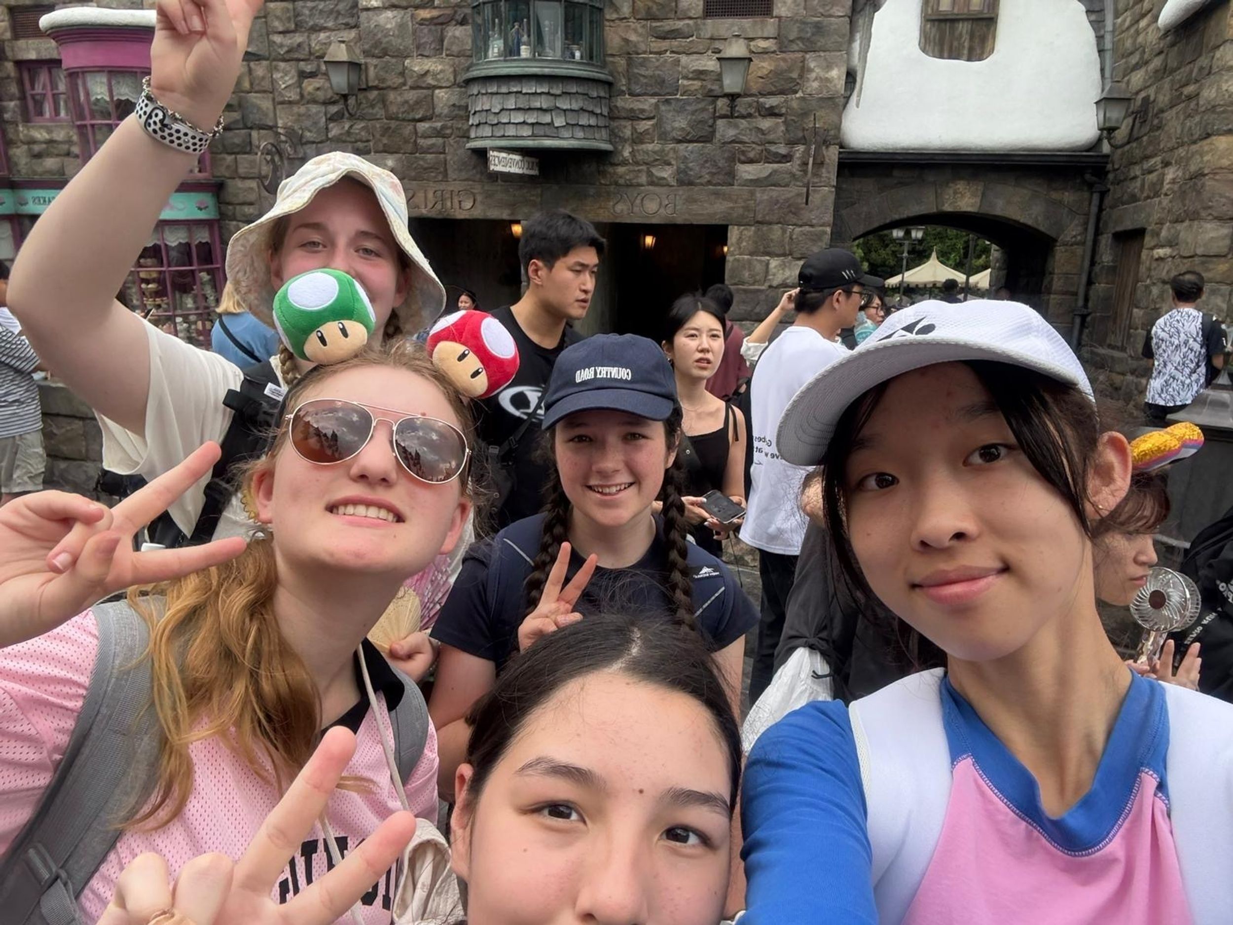 This morning we arrived at Universal Studios Japan to the pounding beat of Lady Gaga’s brand-new track “The Dead Dance”, perfectly setting the spooky Halloween mood for our much-anticipated day. All through the park we were met with cheerful “Happy Halloween!” greetings, and it wasn’t long before nearly everyone was sporting fun character headwear purchased along the way, Mario caps, Pokémon hats, Kitty-chan (Hello Kitty) bows, and roaring dinosaur heads that quickly became the most popular accessories of the day. Everywhere we went felt like one giant costume party. Excitement was high from the very first step inside, and it was game-on straight away as students launched into the day’s special challenge.