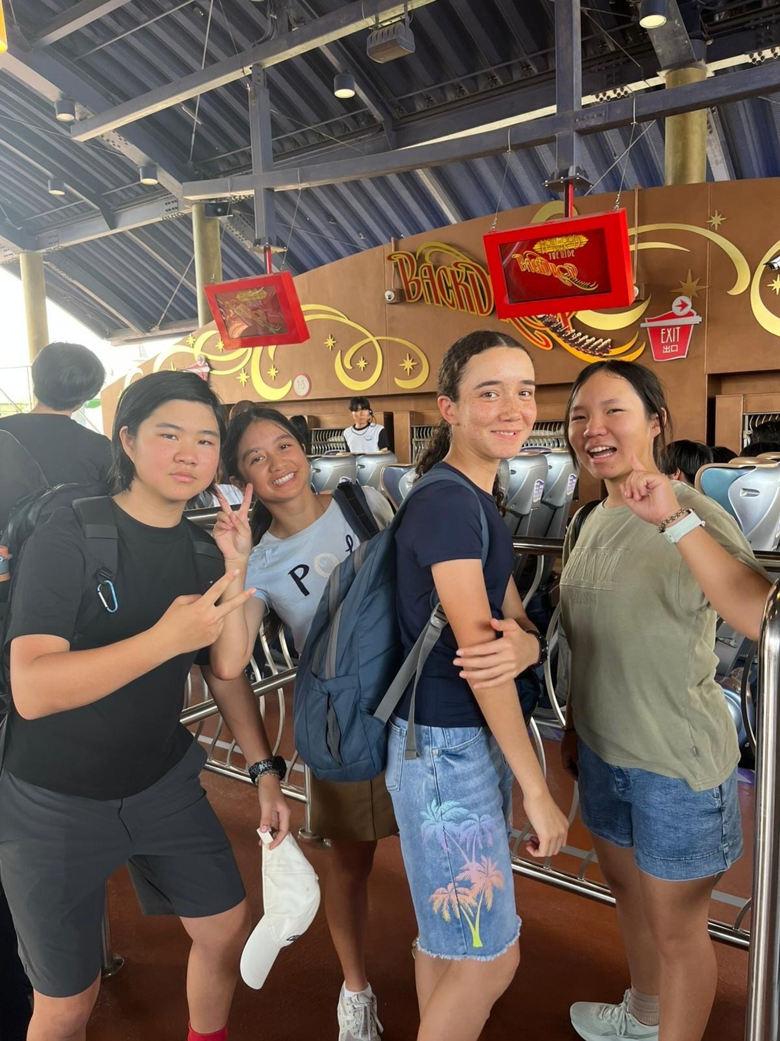 From there, we explored The Wizarding World of Harry Potter, where students stocked up on wands, sipped sweet Butterbeer, and practised spells along Hogsmeade’s cobblestone lanes. Some braved the twisting Harry Potter and the Forbidden Journey ride, soaring through Hogwarts with squeals and wide eyes, while others queued for the family-friendly thrills of Flight of the Hippogriff.