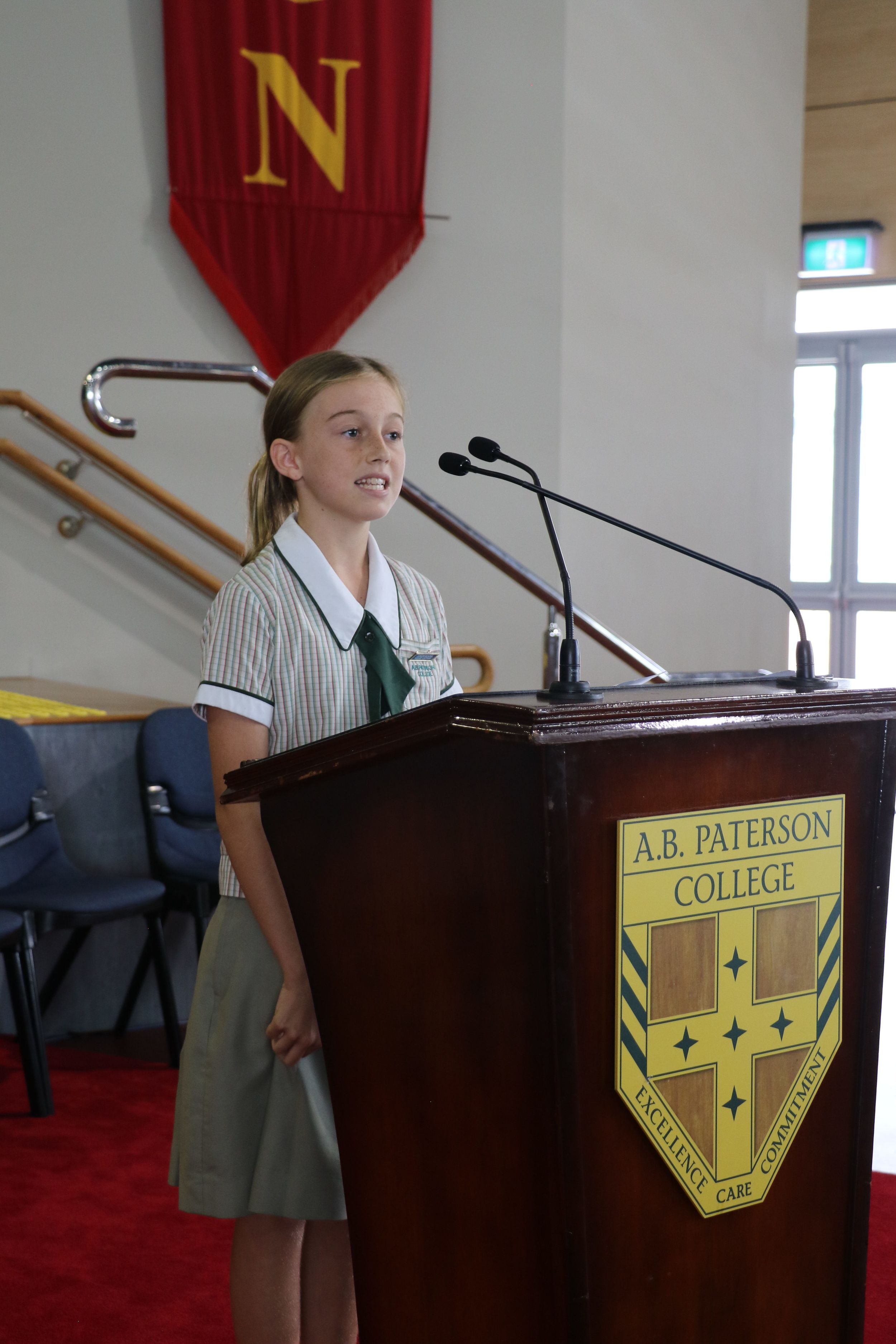 This week, A.B. Paterson College hosted the Helensvale Lions Youth of the Year Competition. College Captain, Jodie Down and Angelina Inthavong represented the College. Jodie won both the Public Speaking section and the Overall Competition and will now compete at the Regional Round in March. Congratulations Jodie!