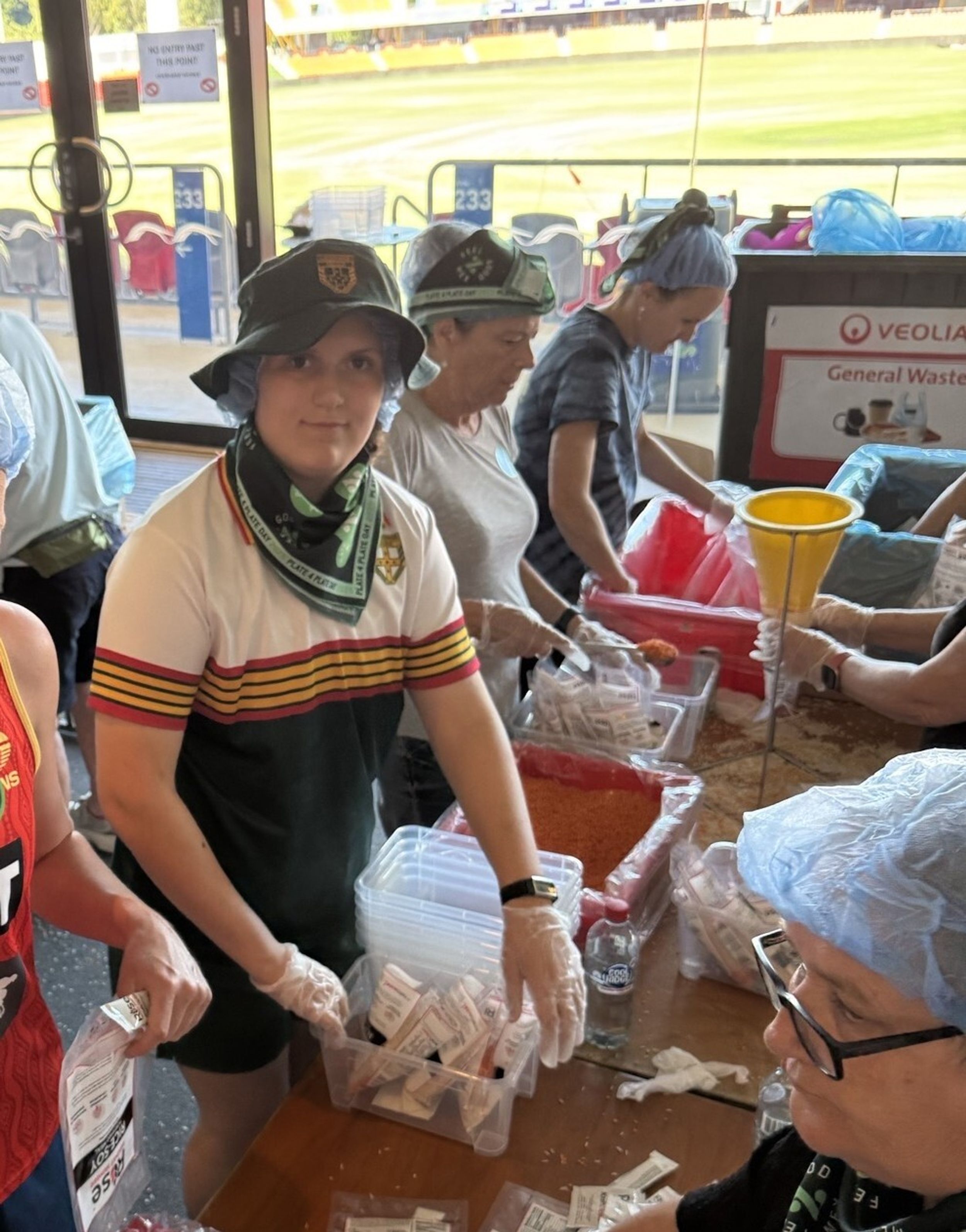 On Thursday 16 October, Zahra Vanes (Year 8) had an opportunity to volunteer her time by taking part in Plate4Plate Day, an event championed by Zambreros and held at People First Stadium. Plate4Plate day is where circa 4,000 volunteers take part Australia wide to pack 1 million lunches for those less fortunate.