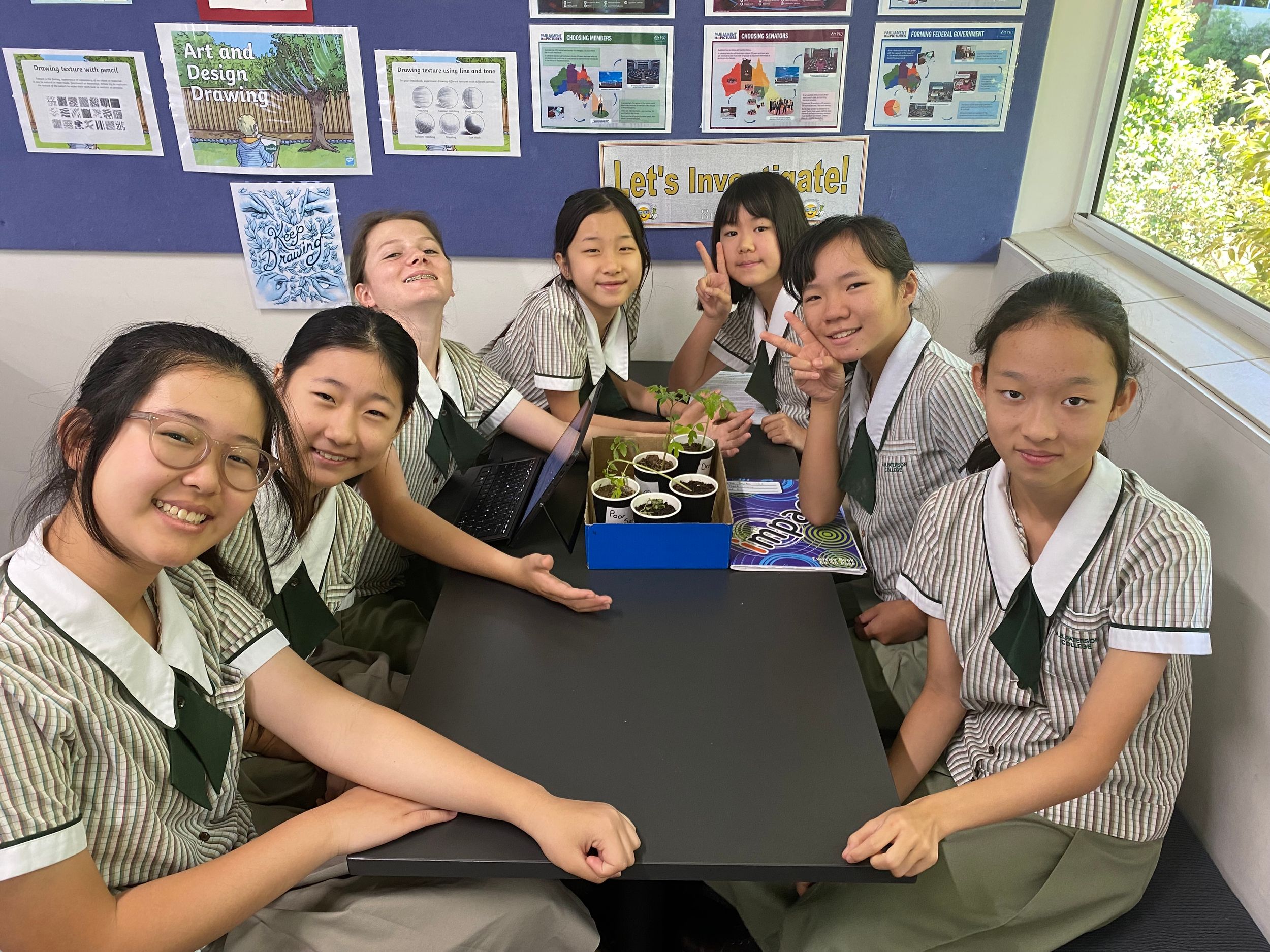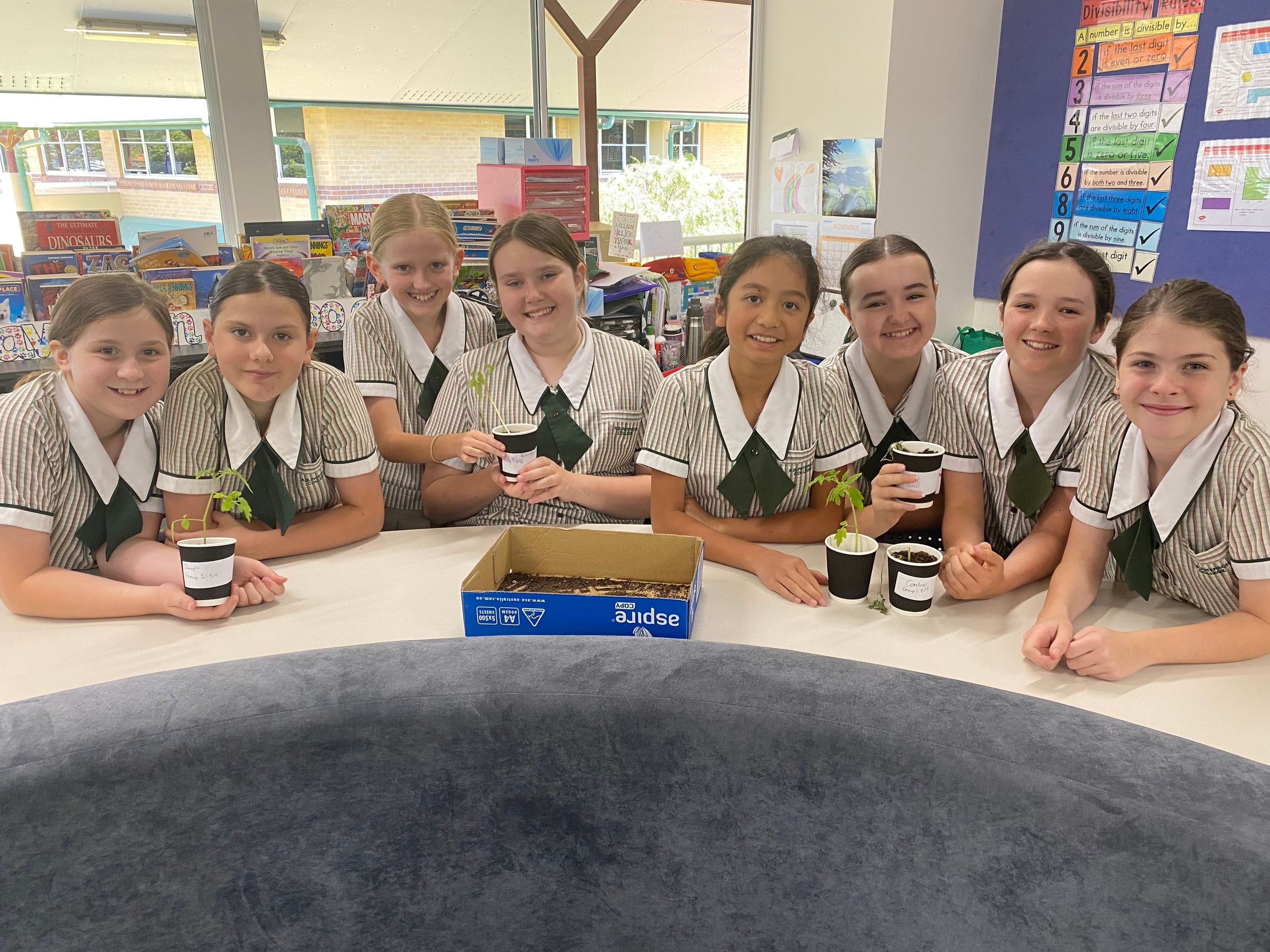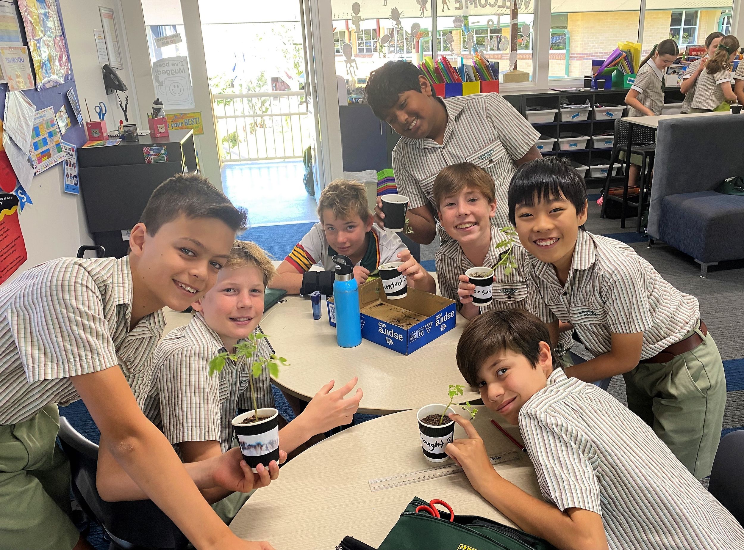 Students were given the learning intention and aim of their experiment to discover how plants adapt to various living conditions. They have created simulations of plants that are undergoing various climate change issues in our current atmosphere. These range from poor soil, drought, salinity, climate change and a controlled environment.