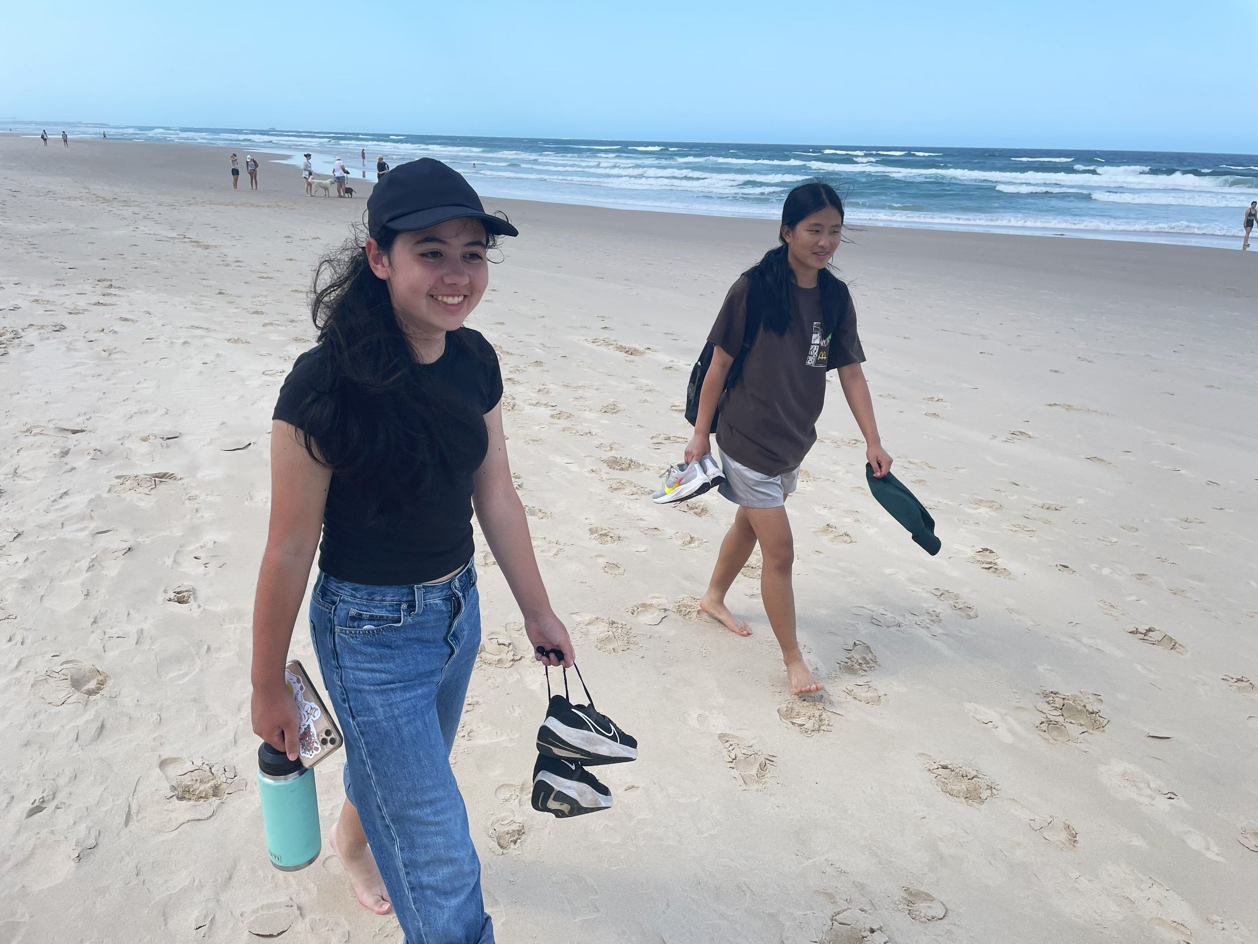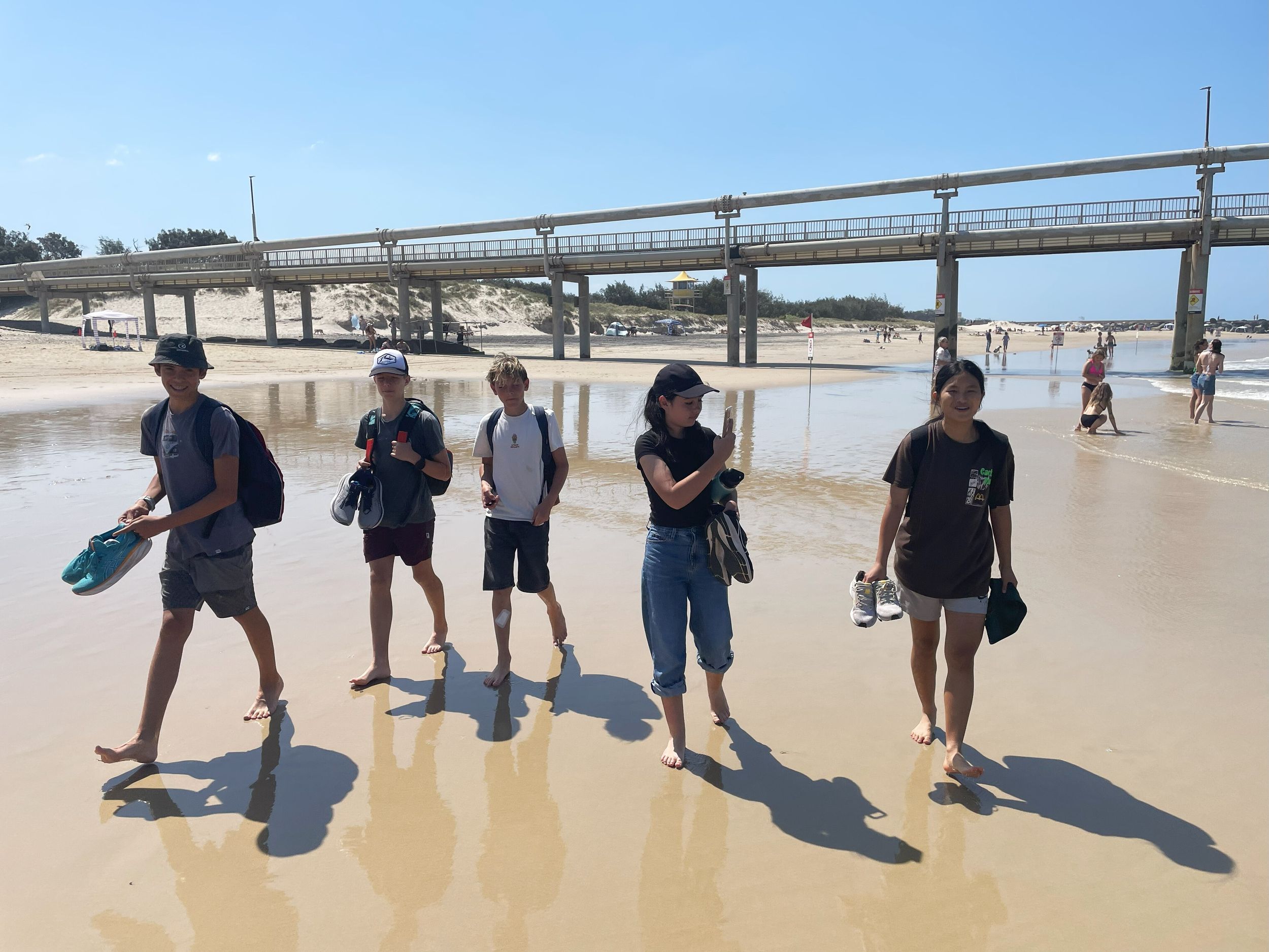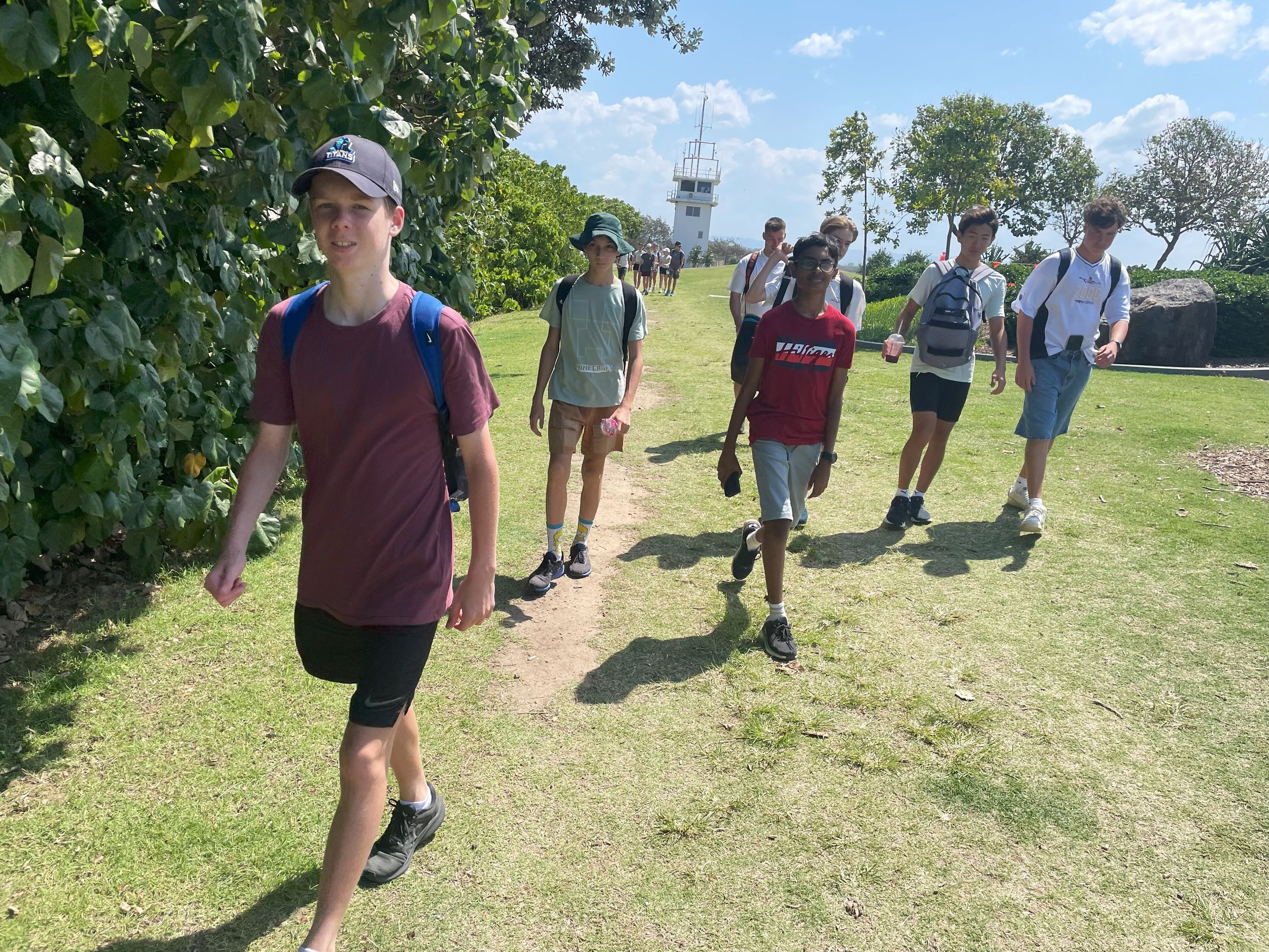 Next, on their busy agenda, was a walk within the Federation Walk Coastal Reserve. A narrow footpath, known as Federation Walk, runs parallel to the beach and ends at the small lighthouse at the Spit. Students firstly walked the route through the natural bush environment and returned via the coastal path along the beach where they stopped for a well-deserved rest break.