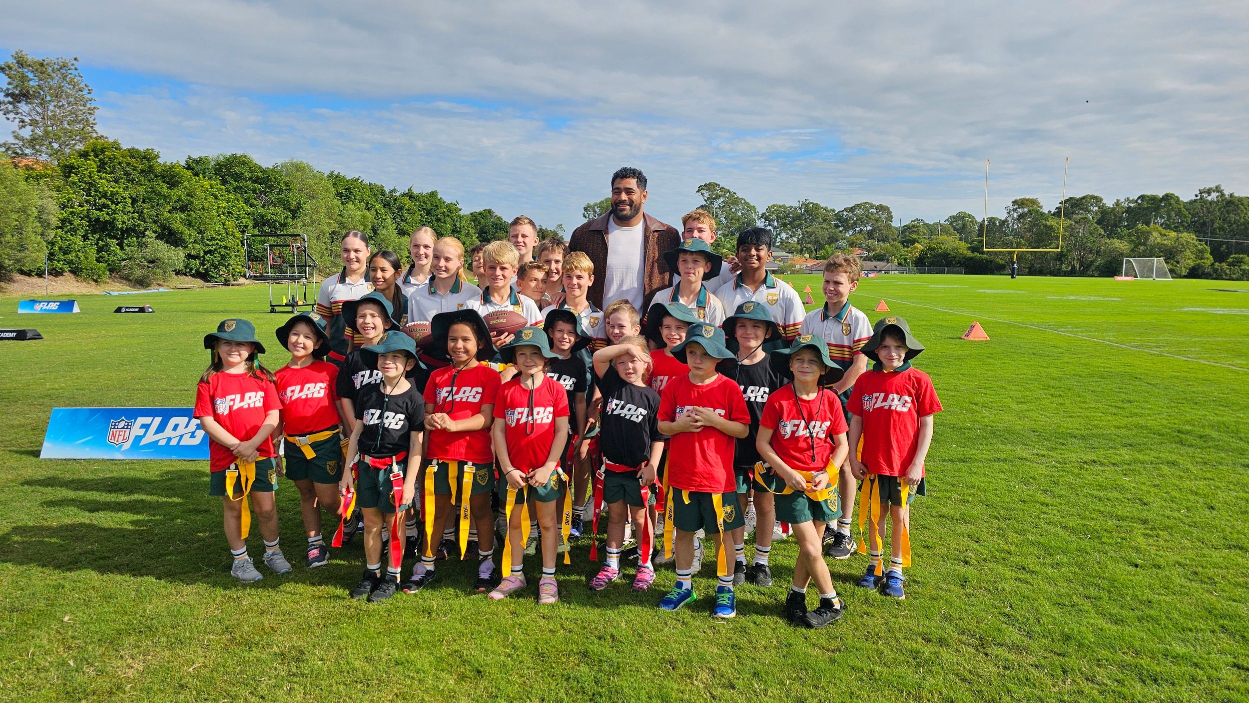 During the official launch of the NFL Academy this morning, our students kicked, caught and threw their way through fun drills and activities, tried out flag football and had the opportunity to speak with Philadelphia Eagles tackle, Jordan Mailata about what bringing the @nflacademy to the Gold Coast means to our community.