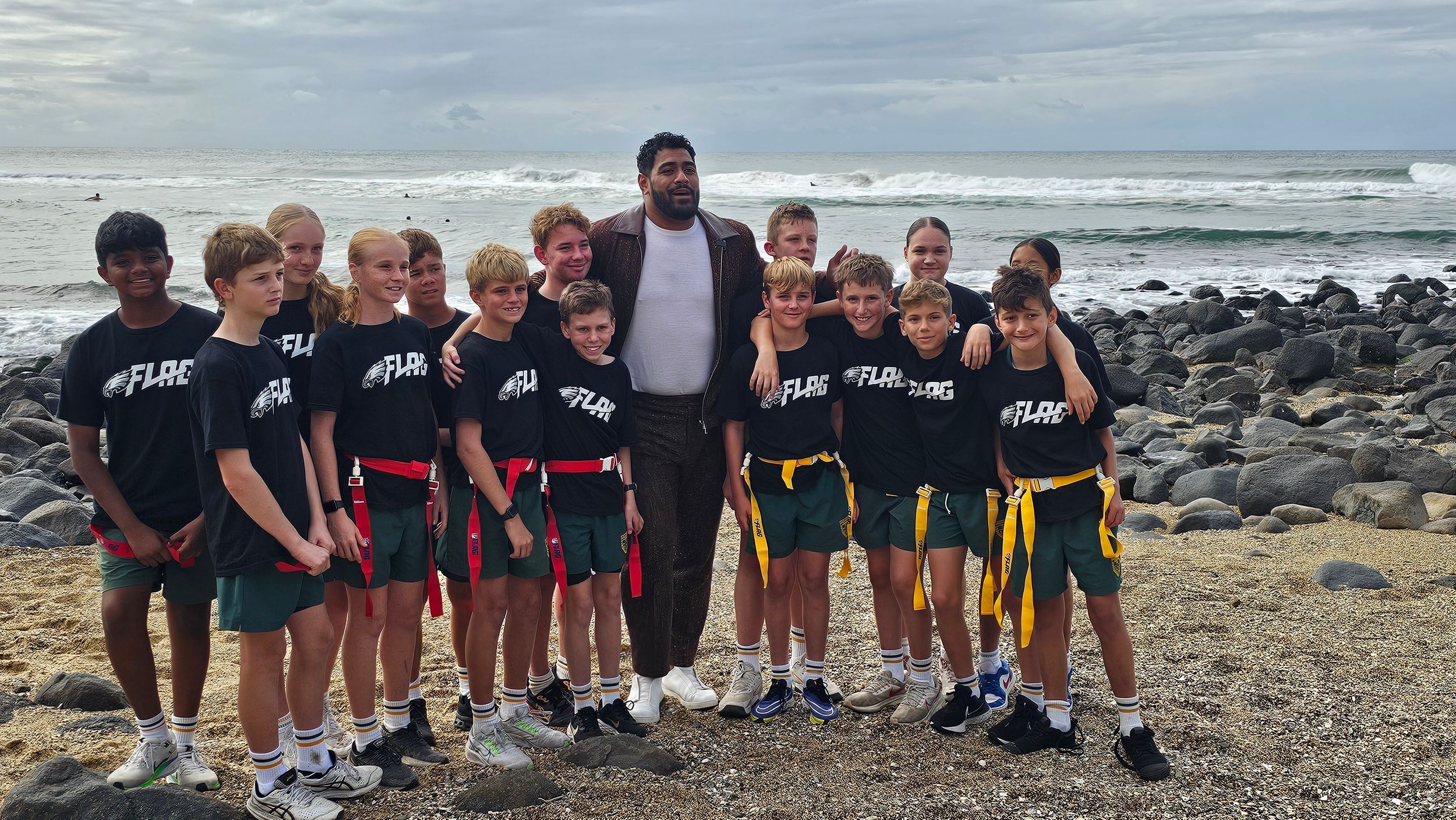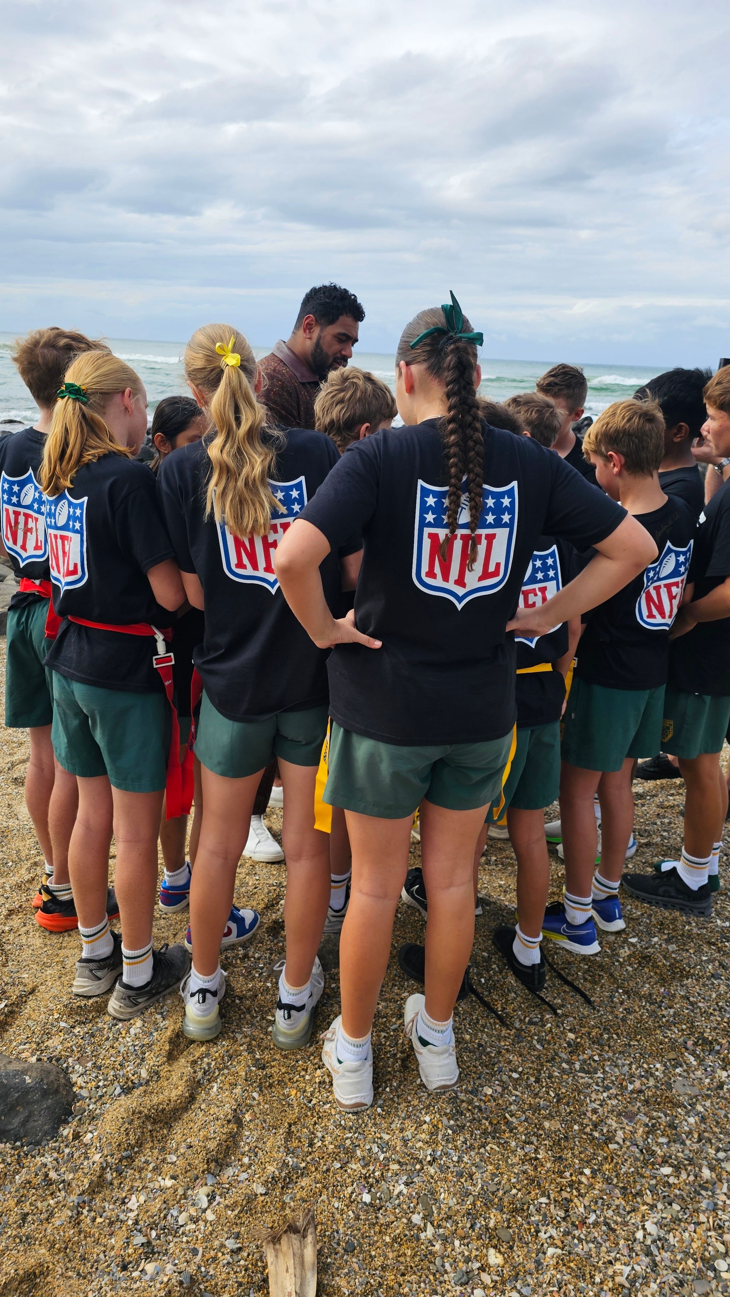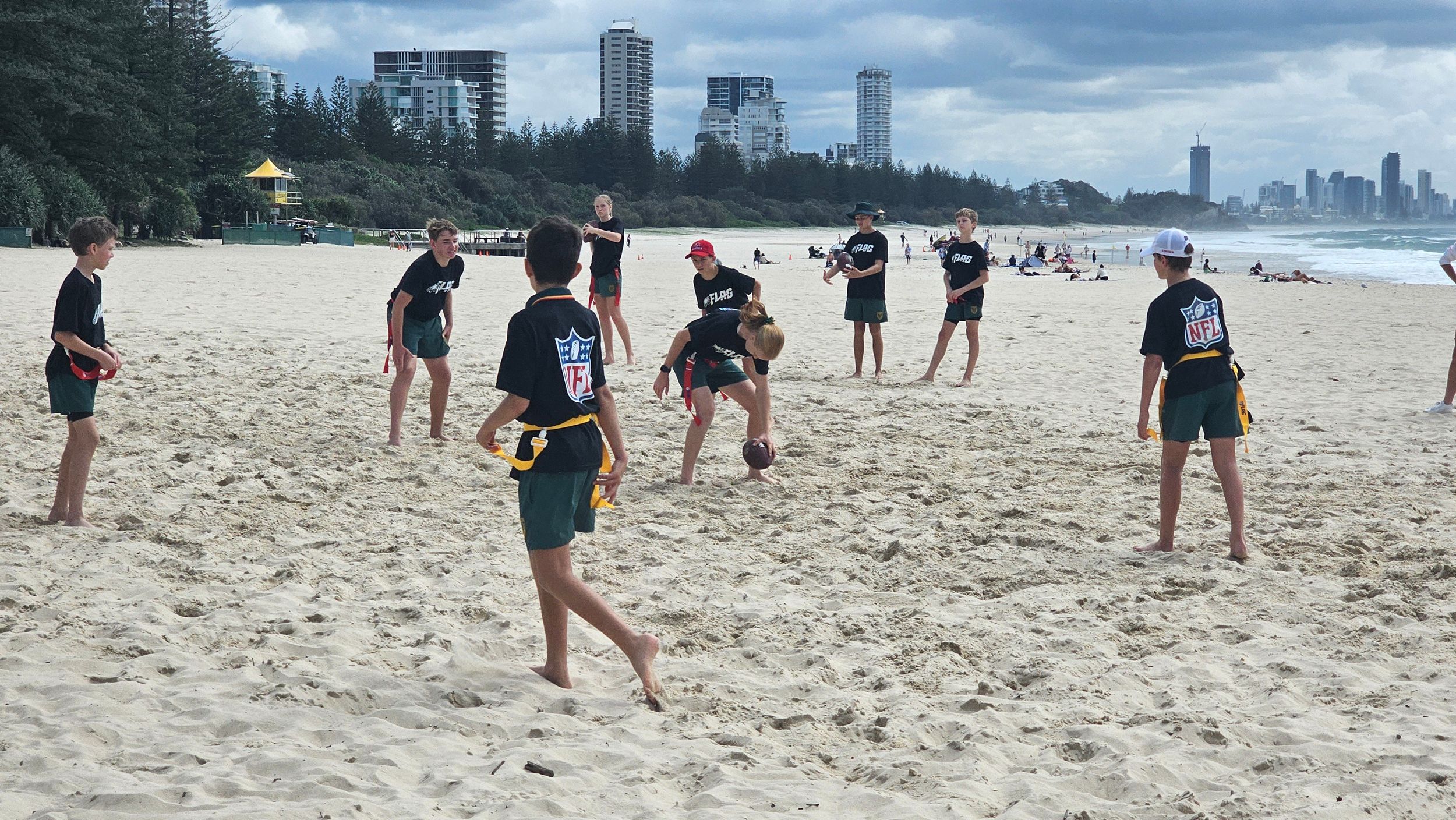 Students had a great time trying out a number of NFL drills at the launch of the NFL Academy on Friday before some NFL Tag on the beach at Burleigh for the Philadelphia Eagles draft announcement.