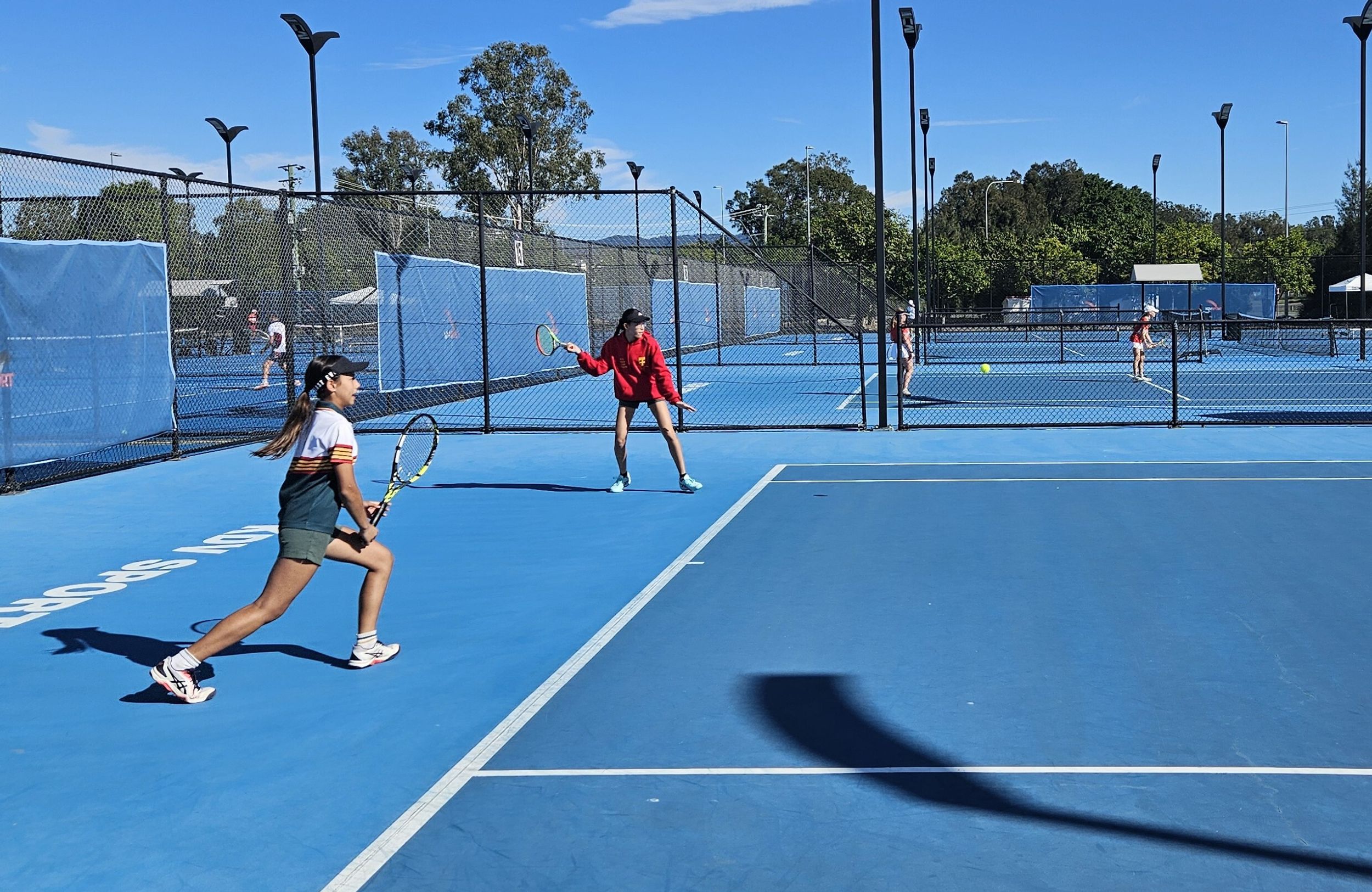 The rescheduled match took place on a beautiful day at KDV Sport in Carrara, providing the perfect conditions for our girls to showcase their talent. Competing fiercely, they secured a place in the state competition in Rockhampton, which will be held on the 12th and 13th of September. The matches were filled with strategic court work in singles tennis and outstanding teamwork in doubles tennis, and their dedication paid off, culminating in a well-deserved victory.